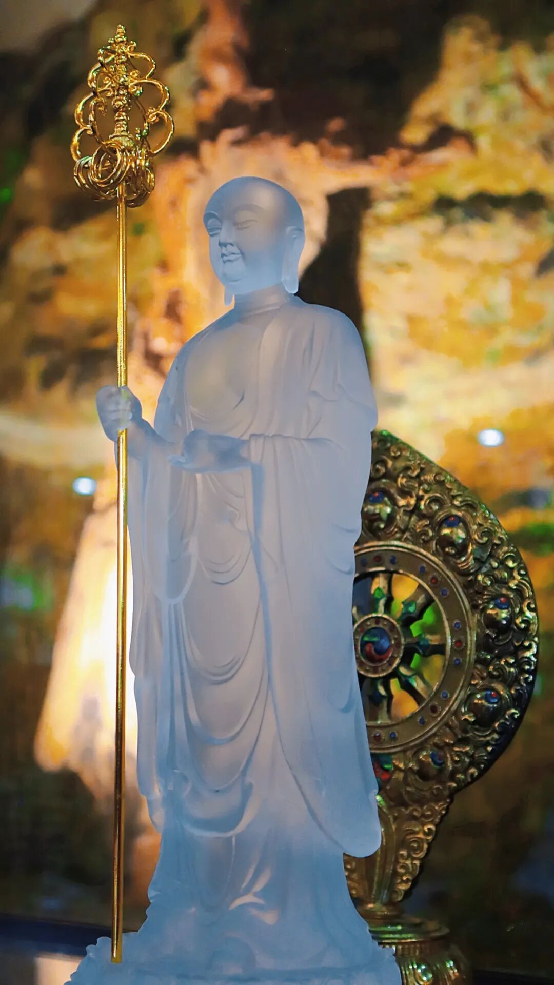 带着万千的思绪,移步瞻仰这个心心念念的院落。它不大,但在在处处透露着家的感觉,庄严又清净。一个个殿宇参拜,发现每一尊佛菩萨的凝视,都那么恰到好处,大雄宝殿的释迦牟尼佛、法堂的地藏菩萨、祖师殿的梦参老法师、还有伽蓝菩萨、坚牢地神、韦陀菩萨,它们的眼神里有悲悯、有庄严、有期望、也有无尽的鼓励和肯定......