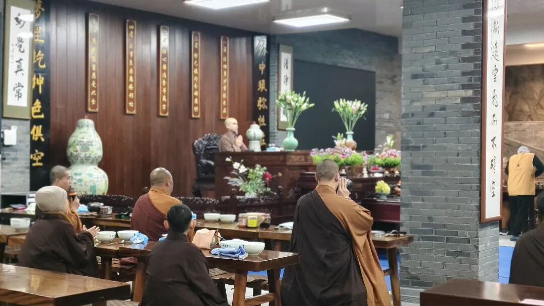 我报名了打扫斋堂的义工,每次过斋后留下来参与洗碗、抹桌子、拖地,几百个碗筷的涮洗,在师兄们争先恐后、通力合作下十几分钟就结束了。