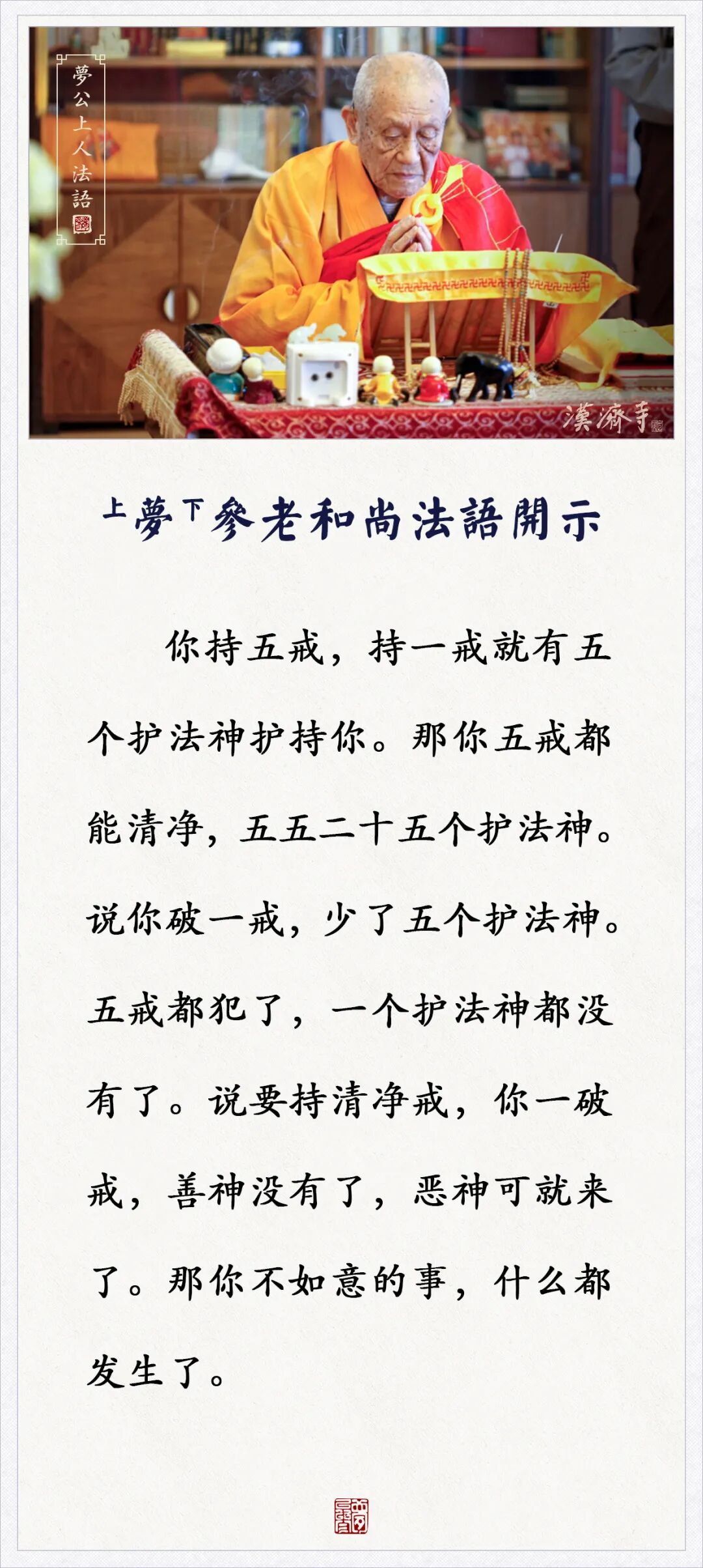 你持五戒,持一戒就有五个护法神护持你(梦参老和尚)