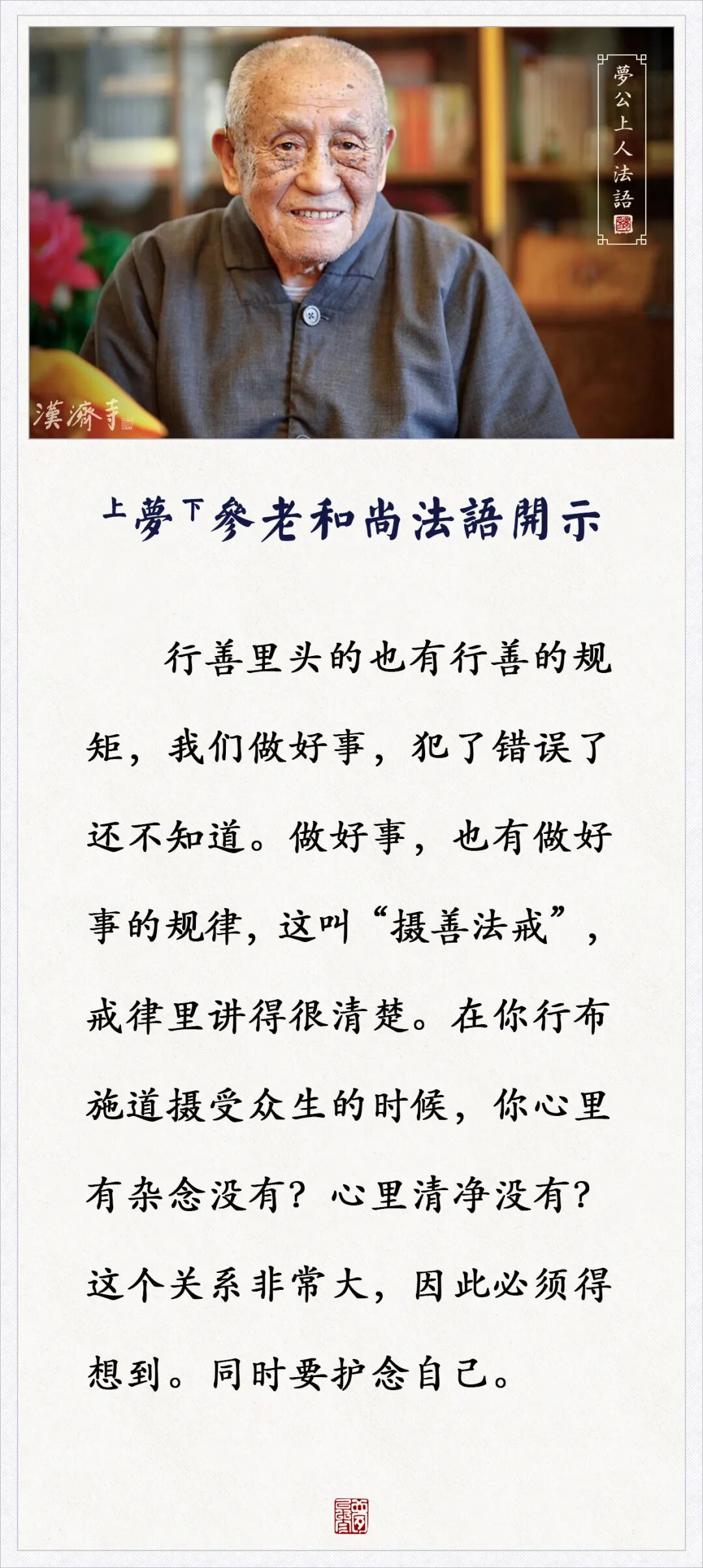 行善也有行善的规矩,我们做好事,犯了错误了还不知道(梦参老和尚)