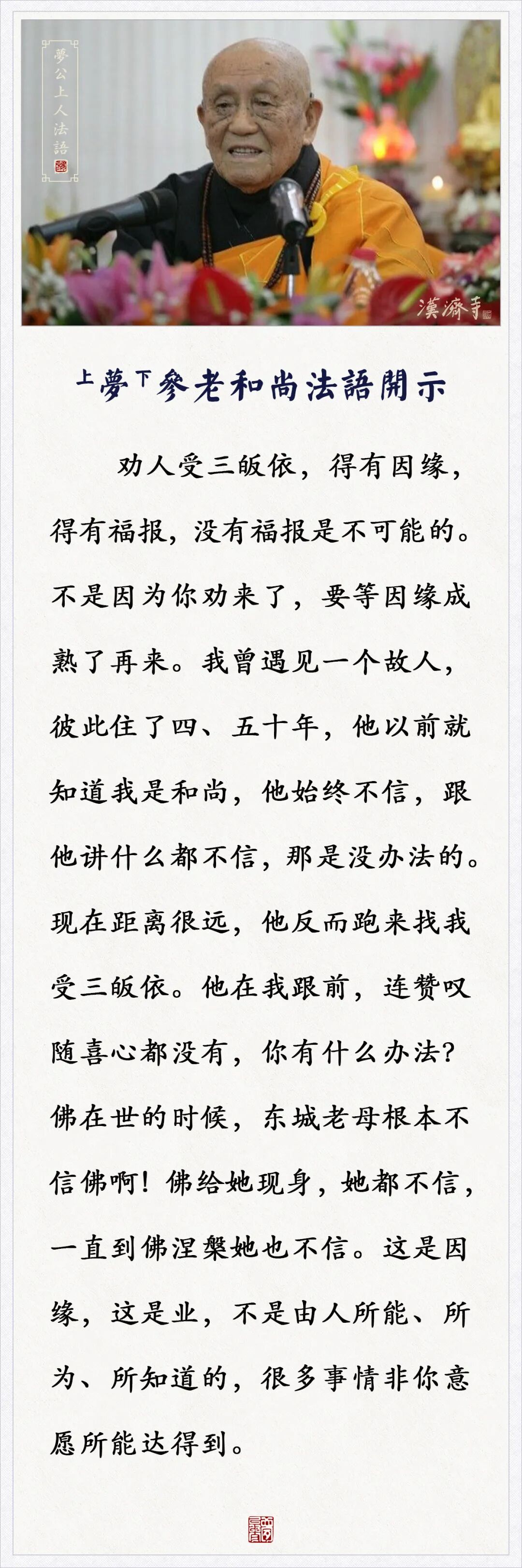 人受三皈依,得有因缘,没有福报是不可能的(梦参老和尚)