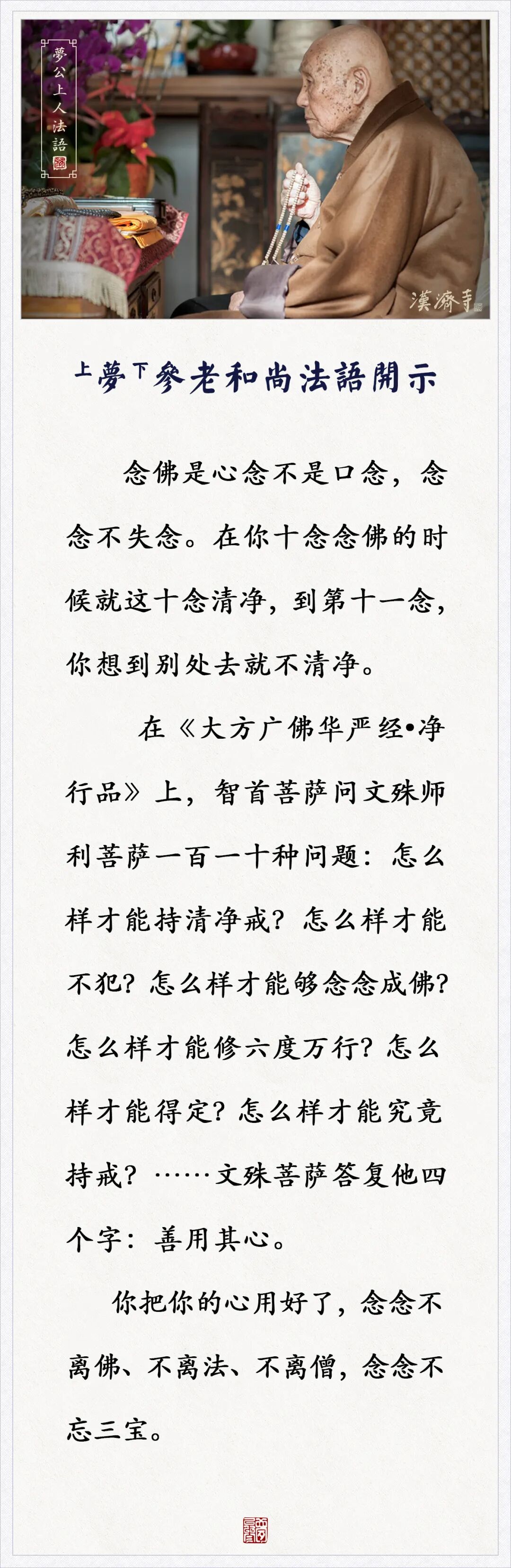 念佛是心念不是口念,你想到别处去就不清净(梦参老和尚)
