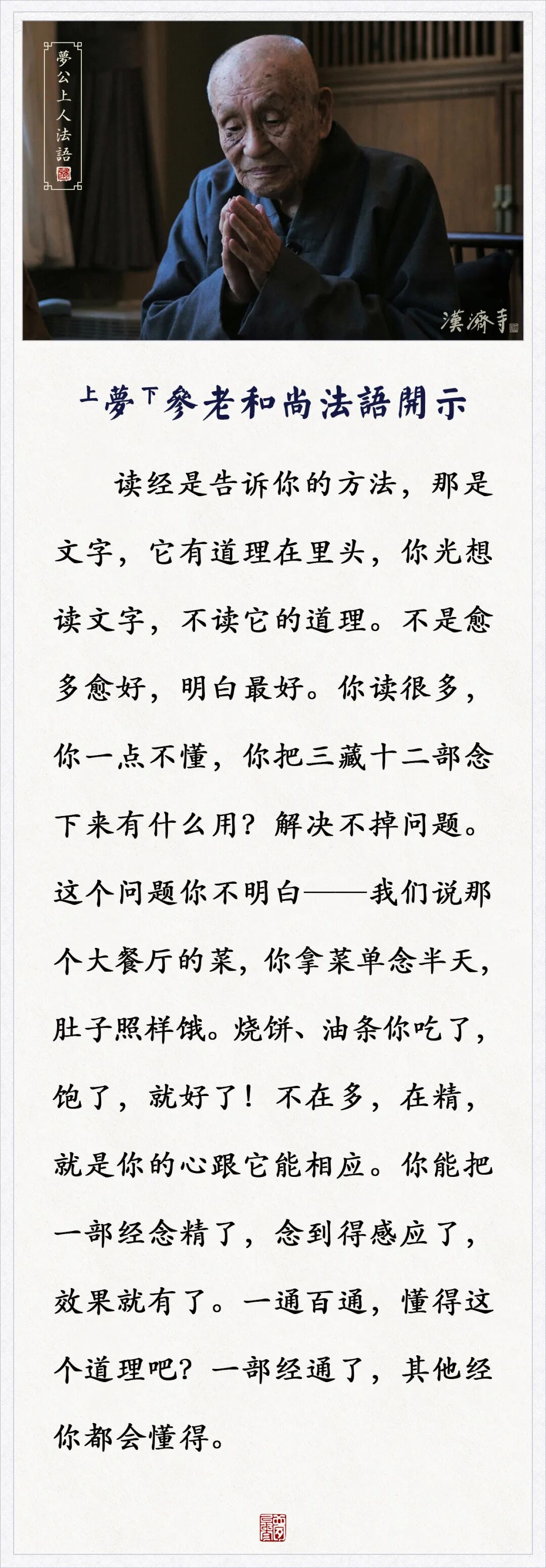 读经不是愈多愈好,一通百通,懂得这个道吗?(梦参老和尚)