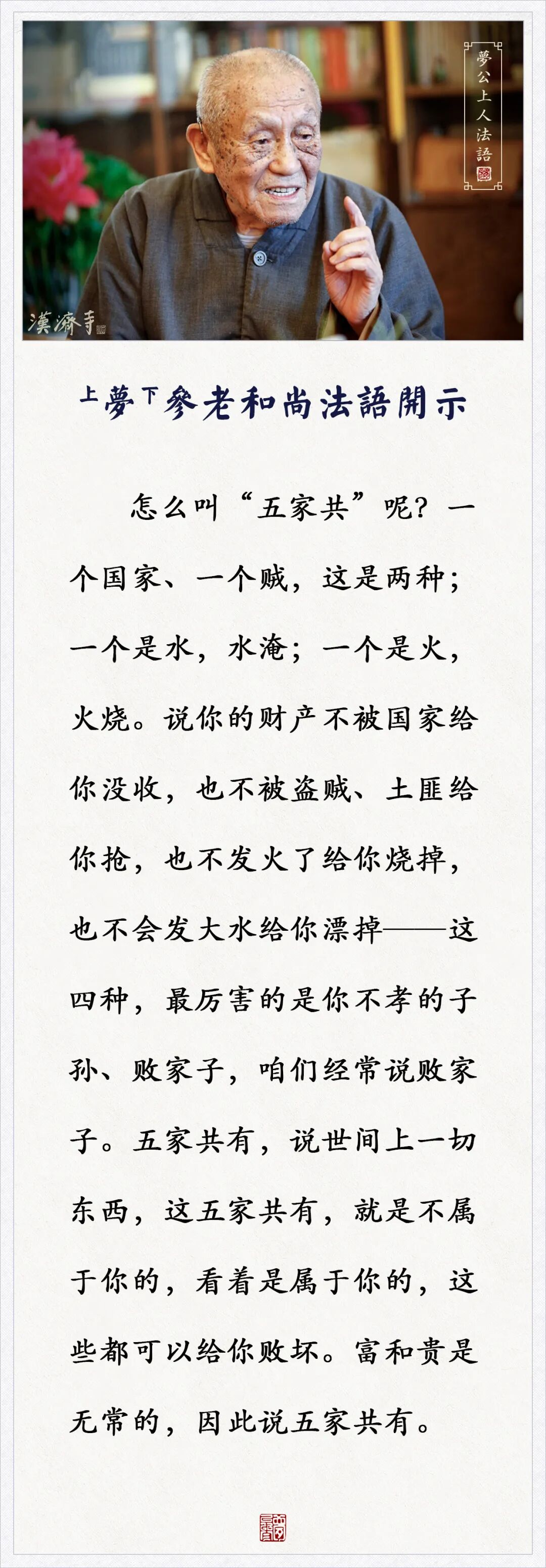 财产看着是属于你的,其实是这五家共有(梦参老和尚)