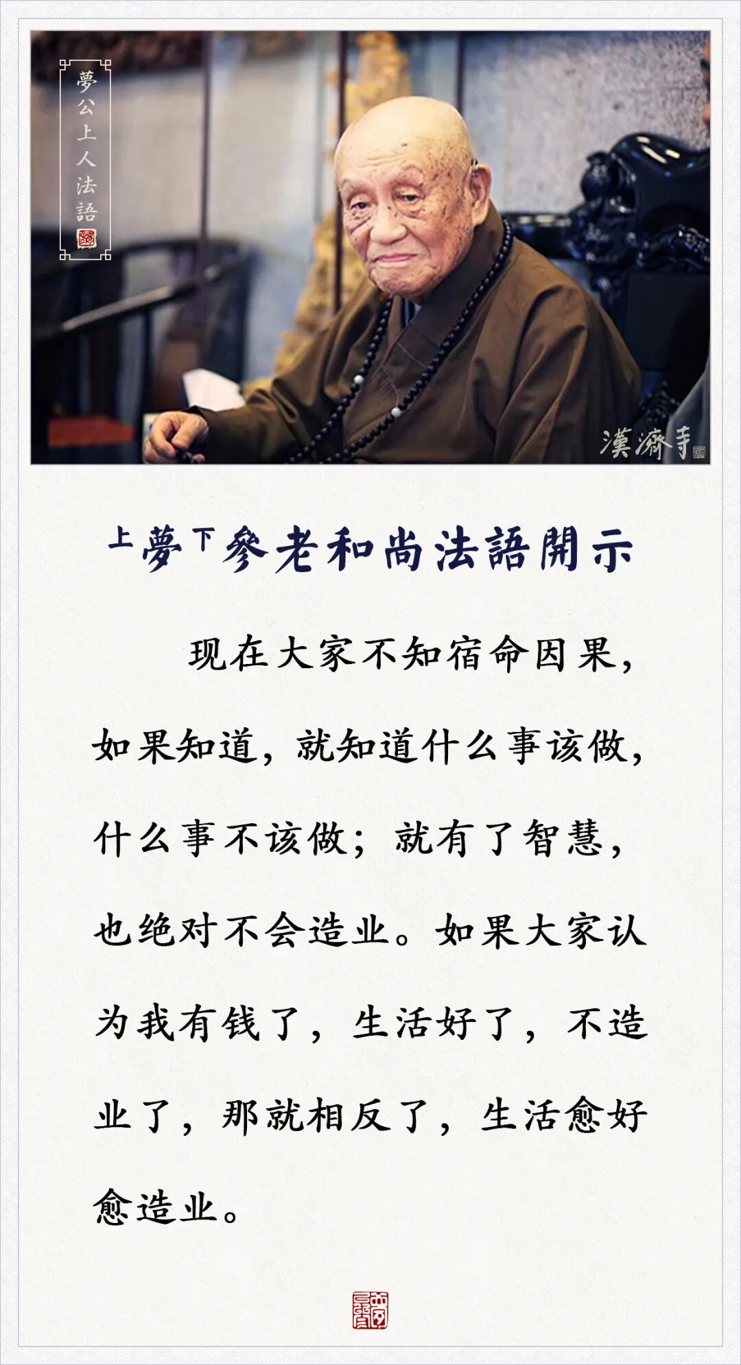别以为有钱了,就不造业了,相反生活愈好愈造业(梦参老和尚)
