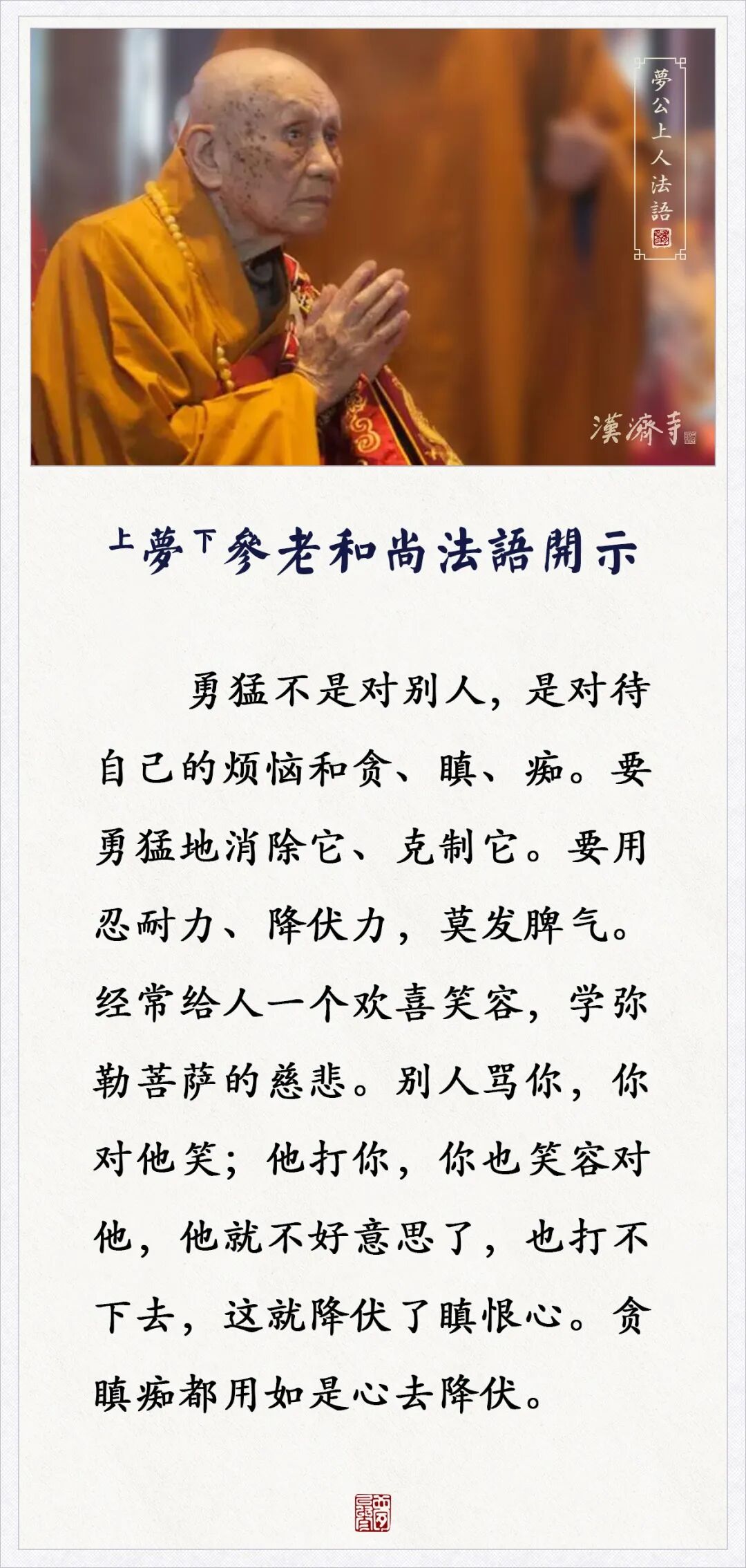 勇猛不是对别人,是对待自己的烦恼和贪、瞋、痴(梦参老和尚)
