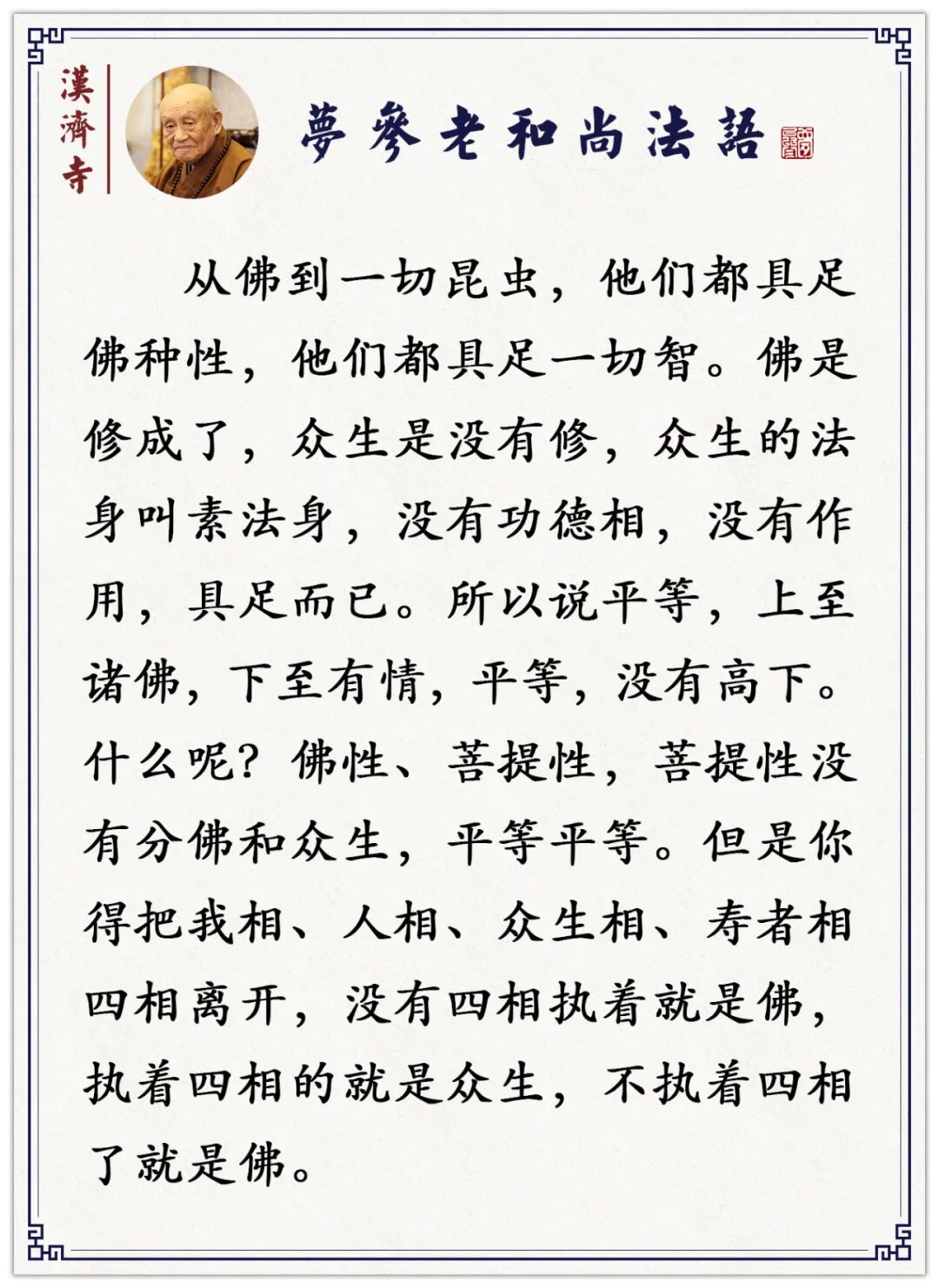 【 若菩萨有我相。人相。众生相。寿者相。则非菩萨。】