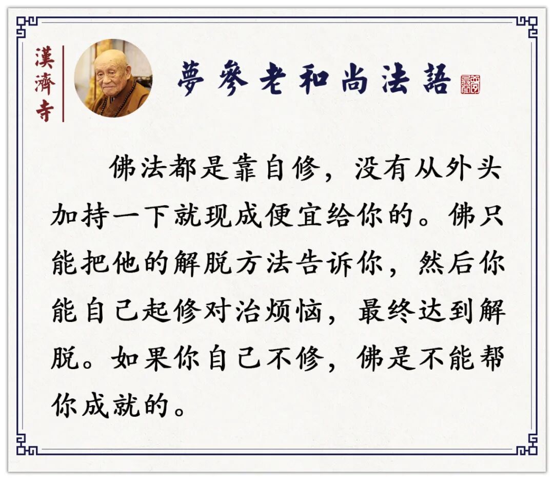 倘若以为念部大乘经典就圆满了,想出亿万个理由,能否有什么办法让我不要付出就能获得这法?没有!我跟大家老老实实地说,我出家六十多年了,我也一直这样在找。要钻空路、学窍门,没有的,不论你跟哪位喇嘛、受什么灌顶,就是释迦牟尼佛亲自来给你受灌顶,佛也没办法。佛也有做不到的事,佛不能消你的定业。佛有三不能。佛能知道众生的一切种性、亿万劫的事,佛都能知道。但是无缘的众生,佛也度不了,佛也不能化,这是佛第一个做不到的事。第二个,佛能空一切相,能成一切万法之智,但是他灭除不了定业,这是第二个佛做不到的。佛能度无量有情,你看《地藏经》,地藏菩萨度那么多的众生,连“佛眼观故,犹不尽数”。文殊菩萨用天眼测量,地藏菩萨已度成佛的、成菩萨的、乃至到忉利天参加法会的有那么多。但是第八品当中,阎罗王问佛:我有一件事情不明了,地藏菩萨那么大的威力、那么大的神通,我看他所度的众生隔没多久又回来了,为什么?不是他度出去的吗?怎么又跑回来了?佛说这是众生的业,刚强、难调难伏,不是一次、两次就能度得好的。就是佛能度无量有情,像地藏菩萨度的那么多,但是众生界是永远度不尽的。就算我们所最尊重、最尊贵的佛也如是,一切佛都如是,一切佛都在度众生,但众生界永远是那么多,无穷无尽。我们刚讲这个地球上有六十多亿人口,那就很多了。大家再看看鱼、鳖、虾、蟹那些海洋生物,究竟有多少?那也都是众生啊。因此,我们应该认识到一个问题——即是要“自修”。要自己努力,没有一个什么样的善巧方便,说我不修就能证得了、就能解脱了,就算释迦牟尼佛再生也是一样;你就算亲自见到地藏菩萨,地藏菩萨也没有办法帮你;观世音菩萨也没办法——你得“自救”。因此,与其幻想有一个能救护你的寄托,不如反过来求你自己的心,把你的心住到一定的住处。《金刚经》中说:“应无所住而生其心。”无住才能生心,生的这个心是什么心?是无住。你把心住在无住上,无住就是一切都不执著,这样才能够得到成就,才能够得到解脱。除此之外,你再也无法寻获。所以事情不需要知道那么多,我们能够断见惑,就很不得了了。只要你能断了见思惑,起码不在三途流转,不到六道轮回流转。我们不要讲得很高、很大、很圆满,但是做起来还是得一步步地实行,脚踏实地地做。另外,我们不要把佛对这一类众生所谈的法,接到另一类众生上,这样是行不通的。因为我们这个时候没有明师,没有好老师给予指导,观不到我们多生累劫的根机。如果就把佛教导的话拿出来说,也不知道哪个是对机的,哪个是契合你的。反正你都接受,因此你会造成混乱,就好像明明是大乘根机的大众,反而跟他们说小乘的契经;面对小乘的根机反而说大乘的经。人家一听就想:我何必学那个呀,我还是明心见性吧。禅门一炷香,立证菩提嘛,还是去学禅宗。这些问题造成了我们的困惑,这种困惑是谁给我们的?是我们自己带来的。因为我们的业,所以遇不着明师。从前有一位道友跟我说,要我给他介绍一位明师让他认识,要像弘一法师、虚云老和尚那样的明师。每次到他那里去,都要我讲讲他们的过往经历,我都没有讲。其实还有比他们更高的明师,像明朝的四大名僧。你只是听到名字,当你真正亲近他们,他们也不是圣德啊。释迦牟尼佛当时在印度人眼中也不比外道强,不过是另创的一位佛嘛。不像我们东方把佛宣传得那么神秘、那么神化,这是不切合实际的。我这样说,大家可能不太能接受,反正我说的是实在的话,这是我出家六十多年的体验。