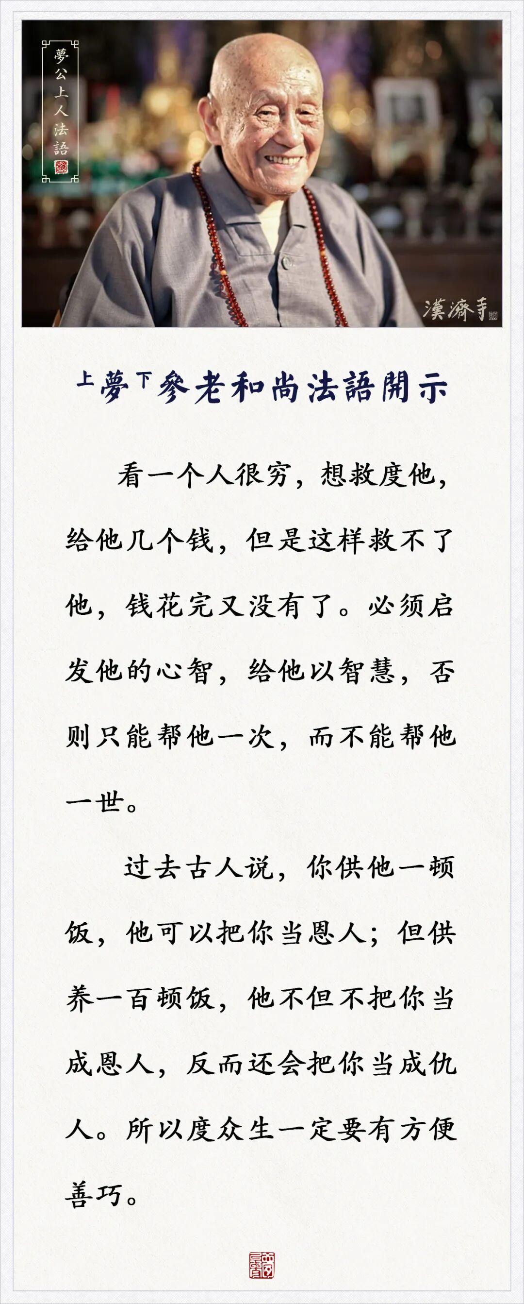 看一个人很穷,想救度他,给他几个钱,这样救不了他(梦参老和尚)
